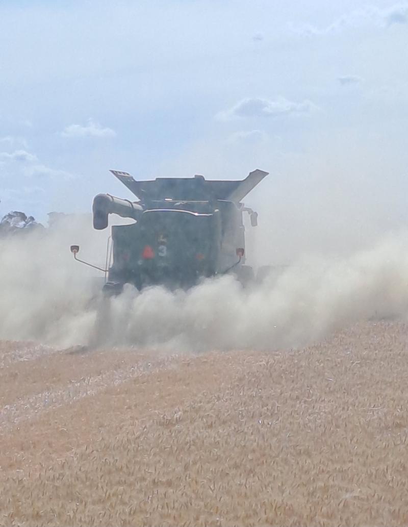 Helping a John deere guy with barley and wheat. See here the Case not much dust in 4.5t barley compared to the overprocessed dust storm of the johnny in 3t wheat. Waste of fuel and money, sample not any better.