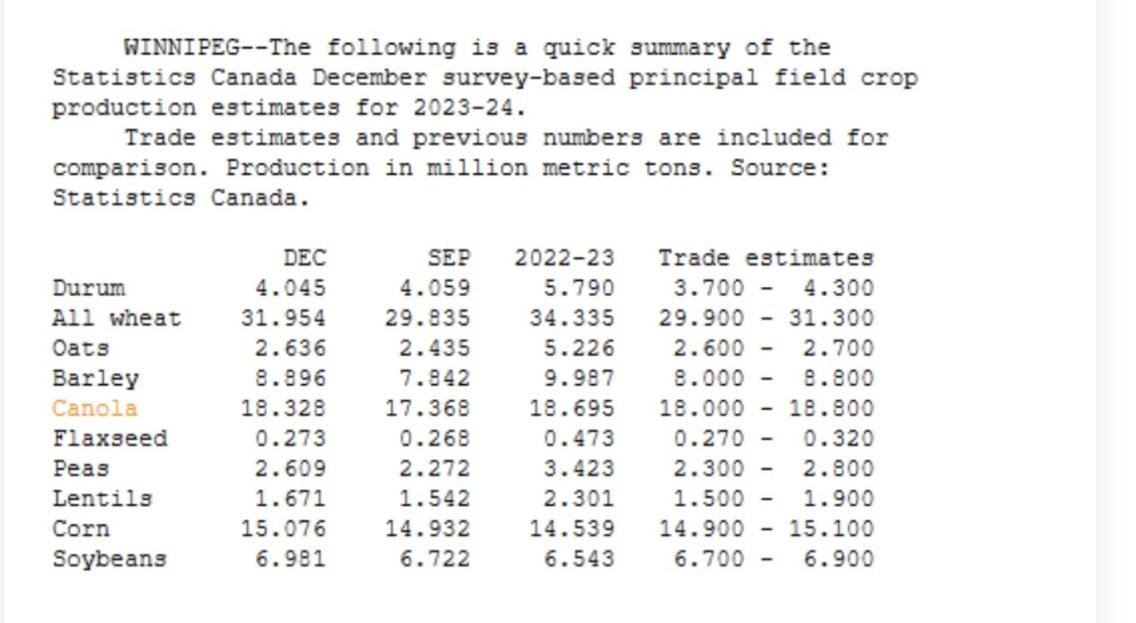 Crop got bigger, but inline with estimates.
