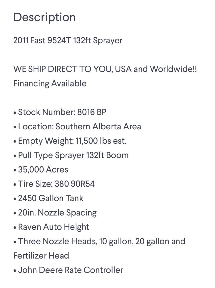 What brand has 2400 gal/132 feet pull type sprayers?Originally posted by furrowtickler View Posttrue equipment payments going to hurt some, especially if interest rates are not locked in .