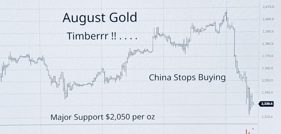Gold taking-a-beating from deflationary wave. China buying slows.