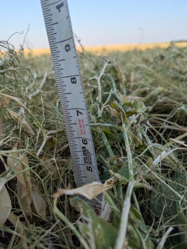 Unfortunately our place was beat up pretty badly by hail on Monday night, most fields that were hit were a combination of heavy rain , high wind and hail one of the fields was a very good crop of yellow peas under a pivot so tall and very lush that had no colour change to it quite yet with pods or seed yet the peas are firm and probably