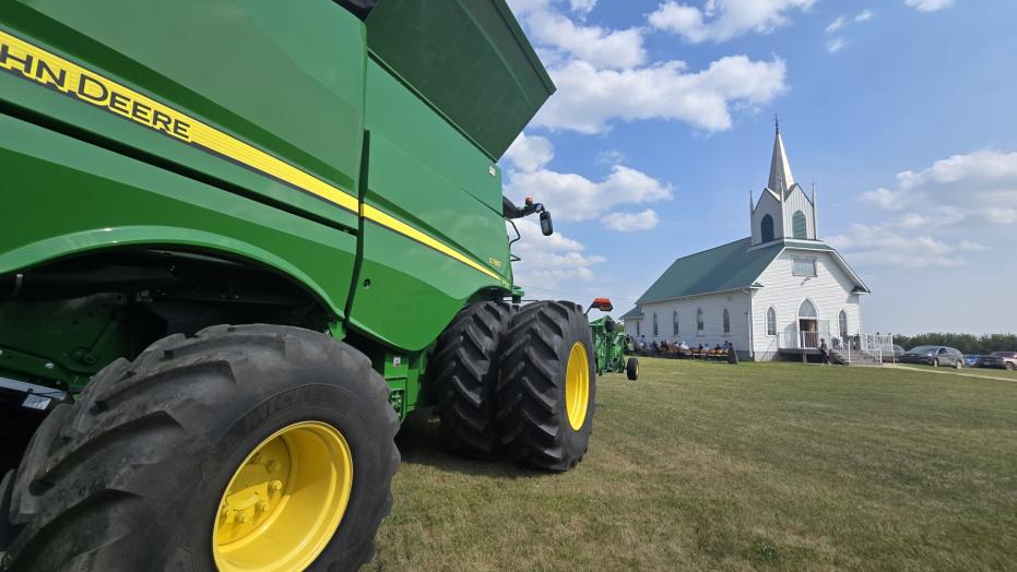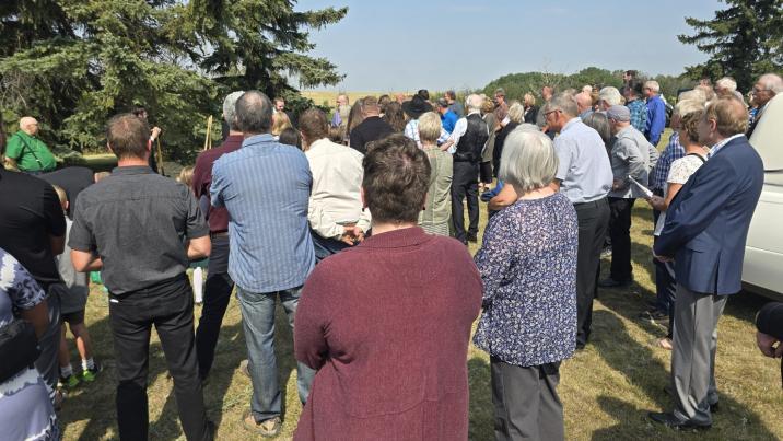 Here are some pictures Vicki shared with me and one newspaper clipping that was on a table after the service. Tom will be able to look at crops for an eternity as there is a field right next to the highway where he was buried and he'll also get to listen to the odd Mack truck as it rolls by. I'm sure he has already filled in Ken Beswick on what it took to get from 1996, when Ken resigned to August 01, 2012...I'm so glad I went; it was a fitting tribute to Tom and his family.Originally posted by crusher View PostThere was a nice send off for Tom on Friday. It was great to see old friends from near and far and it was fitting his church was in a remote rural setting. He was a generous man and fought the good fight. As Larry mentioned, I hope all farmer appreciate the work he did to gain us the marketing freedom. His wife Lucy was instrumental in allowing Tom the time to go off to battle while she attended to the family and farm, kudos to her.