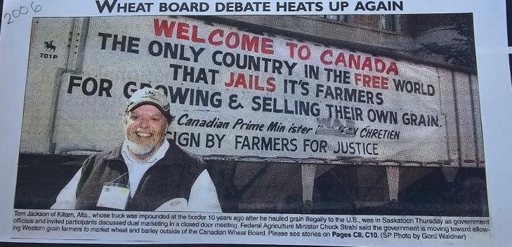 Tom Jackson, Killam, AB. RIP… Some of you may know this already, but Tom Jackson died on August 10, 2024. I’ll print a morning email but then I’m headed to Lougheed, AB tomorrow to pay my respects to Tom Jackson and his family and wouldn’t have time in the morning to dig up quotes like I had this afternoon with no GSW. For all of you who started farming after 2012, take 5 minutes to read about one man’s conviction to change the way wheat and barley were marketed and how his and others fight (and yes, it was a fight) gave farmers the opportunity you have today to sell and price wheat and barley when you want and how much you want to sell… You may or may not have agreed with Tom’s antics or his mannerisms; however, you could never doubt his resolve to make the farming community an improved place and that he dedicated his time, resources and well-being to making it happen. I know Hubert Esquirol and others will chuckle while reading the “socialist agenda” quote below. That was Tom in all his glory. Godspeed Tom and thank you … ♥