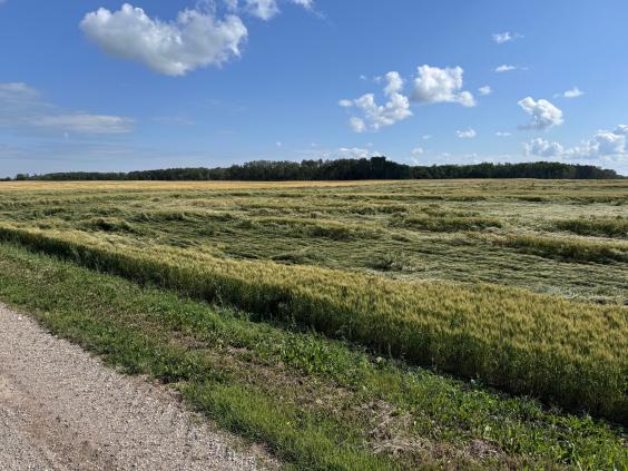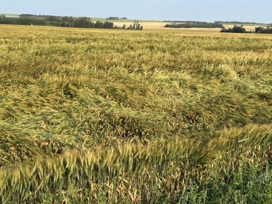 Mother Nature wasn’t kind last night, 7/10” to 2” of rain last night along with hurricane winds. Twisted up our flax and wheat fields, will make harvest more difficult and a lot slower. Hopeful to start preharvest spraying early next week on the early seeded wheat, will have to add at least another week onto the fields that were twisted up.