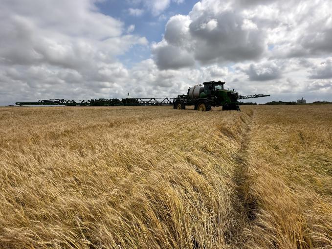 Hrs and Durum are getting sprayed now and the wait begins. Early April seeded is just coming off or just ready after today's rain. The fields look good but I don't believe it will be last year's Good crop. Durum fields are lodged and twisted and thick. Heads didn't fill to potential in the July heat. Only heard one early result 65. That's off from last year for our area.