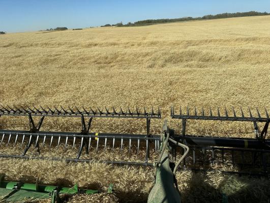 Hrs and Durum are almost all done, most are either on the last section or quarter. Yields are 20% less than 2023 for our area. Last year was phenomenal. Quality is great with high protein and higher test weights.