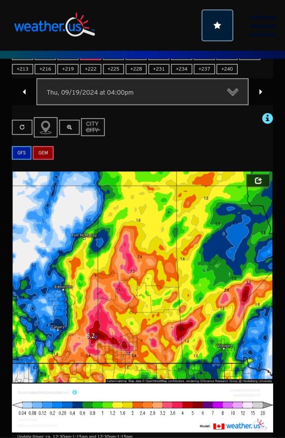 Canola doesn't like July heat, it needs rain, and it doesn't like spring frosts or June. Yes, our area in July is usually a few degrees cooler than Swift and further NE is cooler than us but this year I'm hearing no place has massive crops. If it looks like 50 it's 40. If it looks like 30 it's just over 20. This crop Canada-wide won't hit the satalite yield estimate. Also, those who harvested at 4% moisture and now rains are coming you could have added to your yield by 6% thanks to Mother Nature. It's not even mid-September. You had time. My prediction is canola acres will drop substantially in 2025. It's a very expensive crop to grow with little payback on lower production years. Then throw in our useless federal Gov. (has the Federal Ag minister even acknowledged they ****ed Western Canada for a few useless electric car votes).