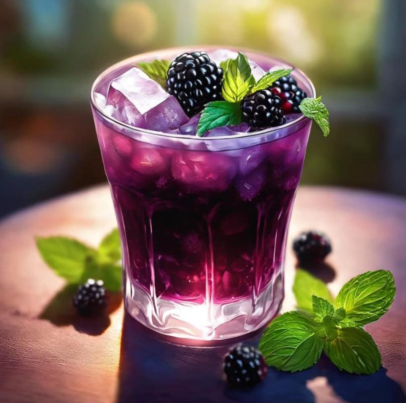 - Garnish with a sprig of mint and a few whole blackberries. Serve immediately.