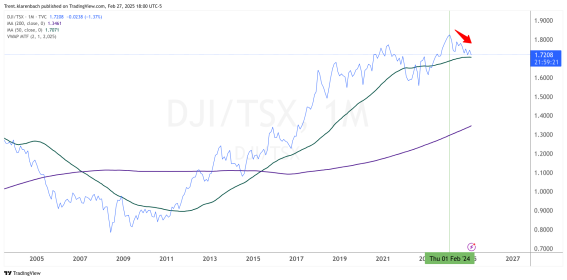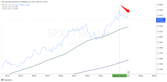 Canada's TSX has outperformed the Dow Jones since February 2024 and the S&P500 since June 2024.