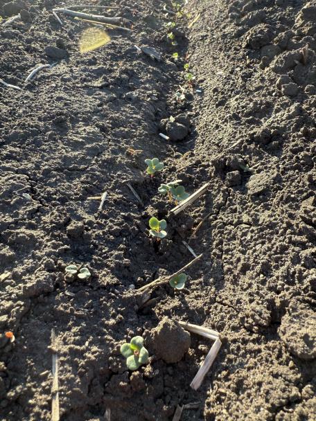 Early canola.has rows and now its lets guess if the flea Beatle crap will work.
