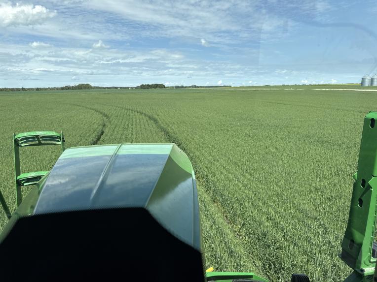 The crop here is short and thin and very uneven. Couple inches of rain at the end of June helped things move along but it’s really getting dry again with all the heat and wind. Didn’t spray any fungicide on wheat or canola. The wheat leaves are staying clean from leaf spots and canola is thin enough the sun can dry out the ground so I don’t think stem rot will be a problem.