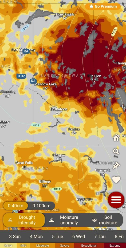 Areas to the NE of here have had more rain (and hail) this week than the crop has had to grow on since seeding at the beginning of May. Not sure that is winning or losing the rain lottery. I have had close to 1.5" between Sunday evening and last evening and am hoping that is it until the crop has been salvaged and put into the bin. The last thing I want to do is try scraping a small crop out of the mud. I think the wheat will make 35 and the barley better at 70. This is on solonetzic ground. Much of the better ground in area will not be doing much better though. Late seeded crops could benefit from recent rains. Turn that alarm on snooze until June in the spring.