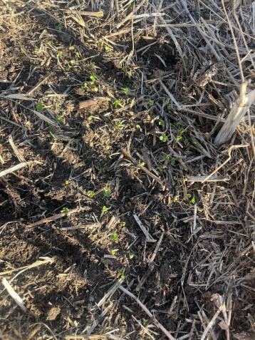 there was no canola seed on ground , all full pods , so ran the coulters in and harrows back with lots of pressure at 14 mph the cut and bust pods . Got fortunate to get some moisture and the past few very warm days