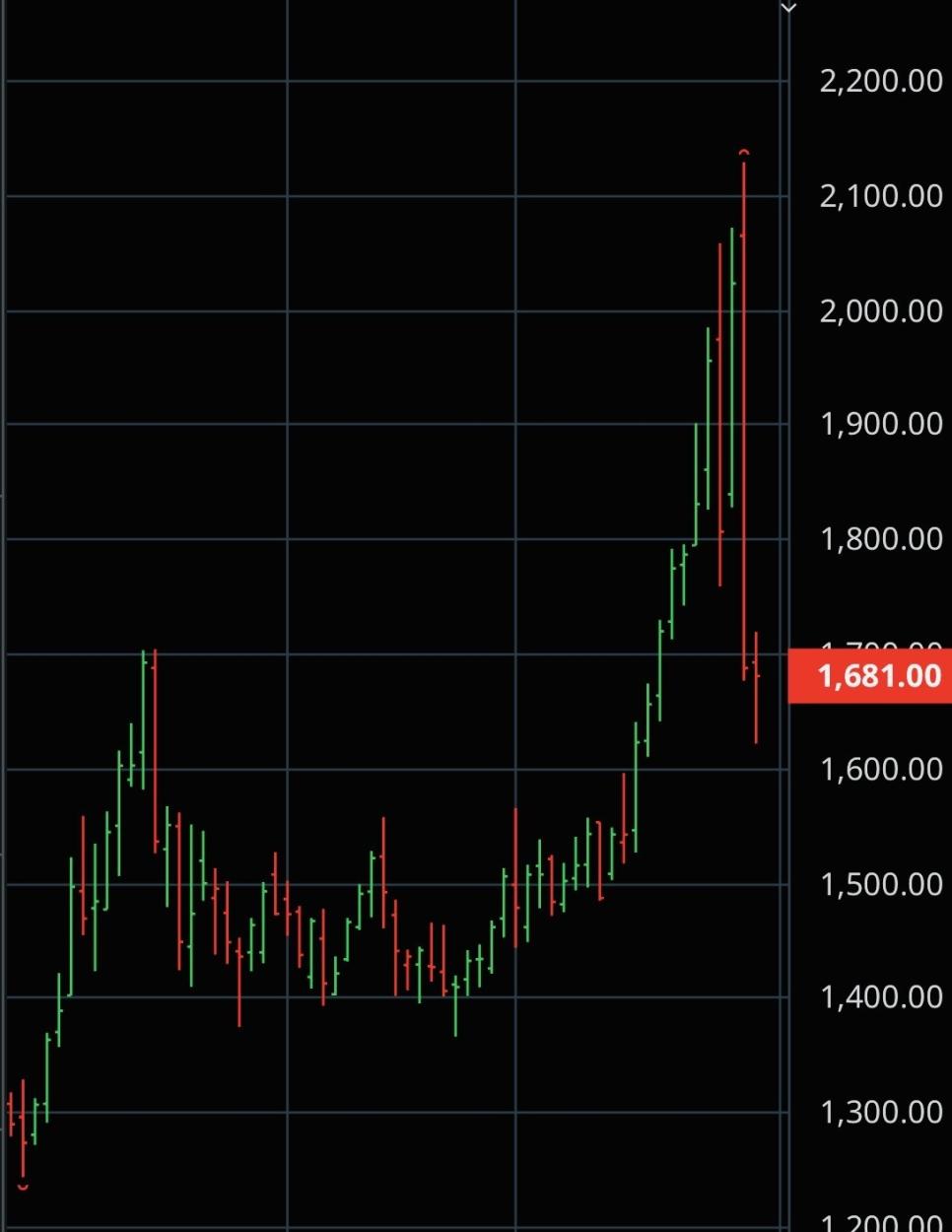 This is a platinum chart. Platinum collapsed 22% over just a 36 hour period this week. Markets don’t recover well from selloffs this quick ‘n deep.