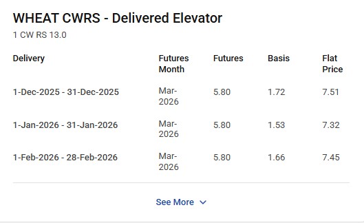 We would be getting the equivalent of "$287 AUD for number 1 CWRS where I live in badly land locked south east Sask.