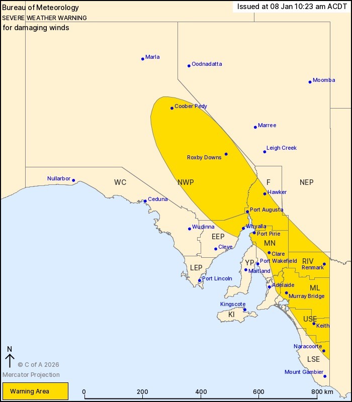 Wynarka we are right in the epicentre of danger zone temps 40c and above. No storm chasing for me tommorow stay home and protect property if need be happens about once every 4 or 5 years a day like this. We have a self imposed paddock ban no vehicles in paddocks after 8am and returning at 7pm or when threat has passed.