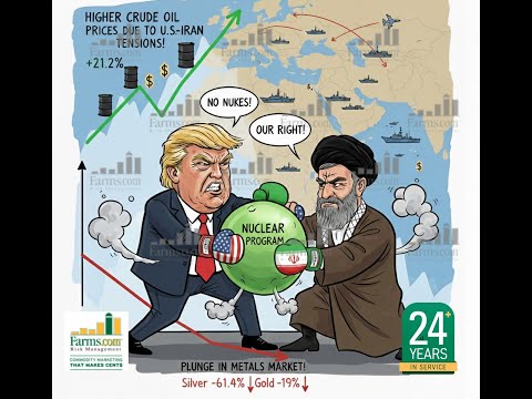Crude oil prices are spiking on concerns that Trump might attack Iran over their nuclear program and China/Russia vowed to protect Iran a large oil producer in the Middle East.