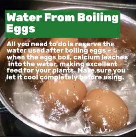 आपको केवल उबलते अंडे के बाद इसà¥à¤¤à¥‡à¤®à¤¾à¤² पानी को बचाने की जरूरत है। जब अंडे उबालते हैं, कैलà¥à¤¶à¤¿à¤¯à¤® पानी में घà¥à¤² जाता है, जिससे आपके पौधों के लिठउतà¥à¤•ृषà¥à¤Ÿ फ़ीड मिलती है। सà¥à¤¨à¤¿à¤¶à¥à¤šà¤¿à¤¤ करें कि आप इसे इसà¥à¤¤à¥‡à¤®à¤¾à¤² करने से पहले पूरी तरह ठंडा कर दें।
