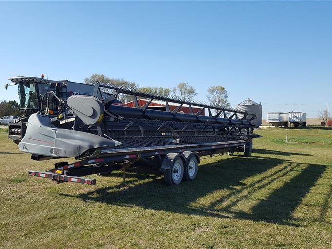 Specs: 35’ wide, updated bearing holders, SCH sickle and drive, electric reel fore and aft, single point hydraulic and electrical hook up, emergency flashers.