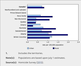 Firearm-related homicides in urban and rural areas of Canada, by province, 2017