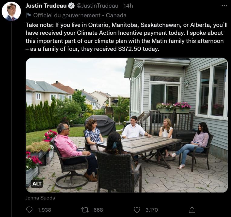 What is really funny is that the credit on the tax return wasn’t visible enough, it wasn’t having its desired effect. It wasn’t buying any votes. Now Justin Trudeau is pretending these payments will help Canadian’s cope with inflation. He forgets to mention you have already payed more in carbon tax than you get back, typical Liberal math!Originally posted by chuckChuck View PostThe Climate Action Incentive payment will be paid in quarterly instalments for the first time this year. In previous years, the payment was delivered as a component of tax returns.