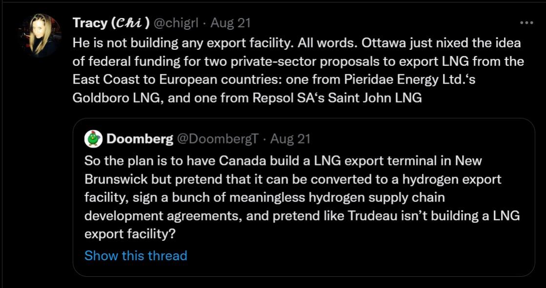 Angus Reid has Justin Trudeau’s disapproval rating at 56%. I was just reading on Reuters that Olaf Schulz’s disapproval rating at 62%. Do you think the average Canadian or German trying to afford high electrical and heating costs is going to get excited about a wind farm in Newfoundland to produce Ammonia to export to Germany. More pie in the sky virtue signalling from so called progressive politicians. How will that lower inflation rates today?!Originally posted by chuckChuck View PostIt's more of the negative Nellies canada is a shit hole club on Agrisilly.