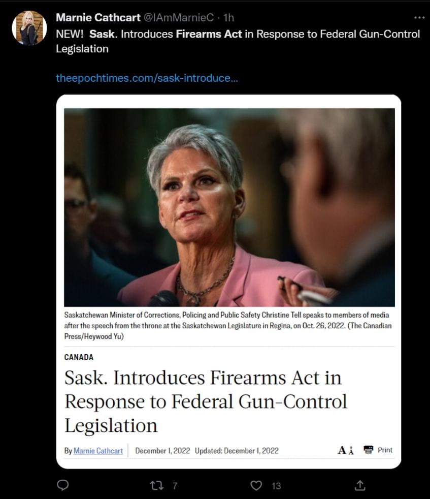 The province can direct RCMP and police to not follow the law and if the feds push it through, any confiscation agents by law must register with the provinces Chief Firearms Officers. Remember when Moe put that position back in provincial control last summer.
