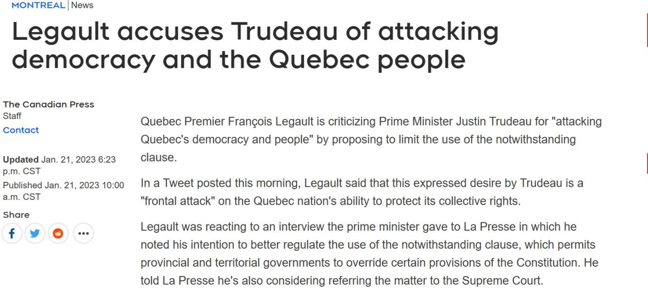 Now that Sask and Ab have exercised the same options Quebec has had and are poised to use the NWC/Sovereignty Act, Trudeau wants to go the SCC and limit it.
