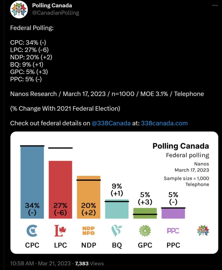 Not all that impressive for Crypto Polly and the CPC considering how bad things are in the economy and politics for Trudeau.