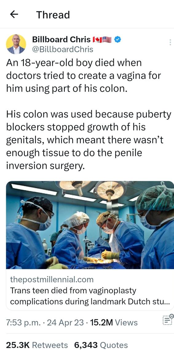 Go look up phalloplasty if you want a eye opener. Literally mutilation disguised as health care for the mentally disturbed. Just to have other gender parts hanging there that will never work or even look normal.Originally posted by sumdumguy View PostDisgusting deviants have kids so confused, so sad!