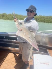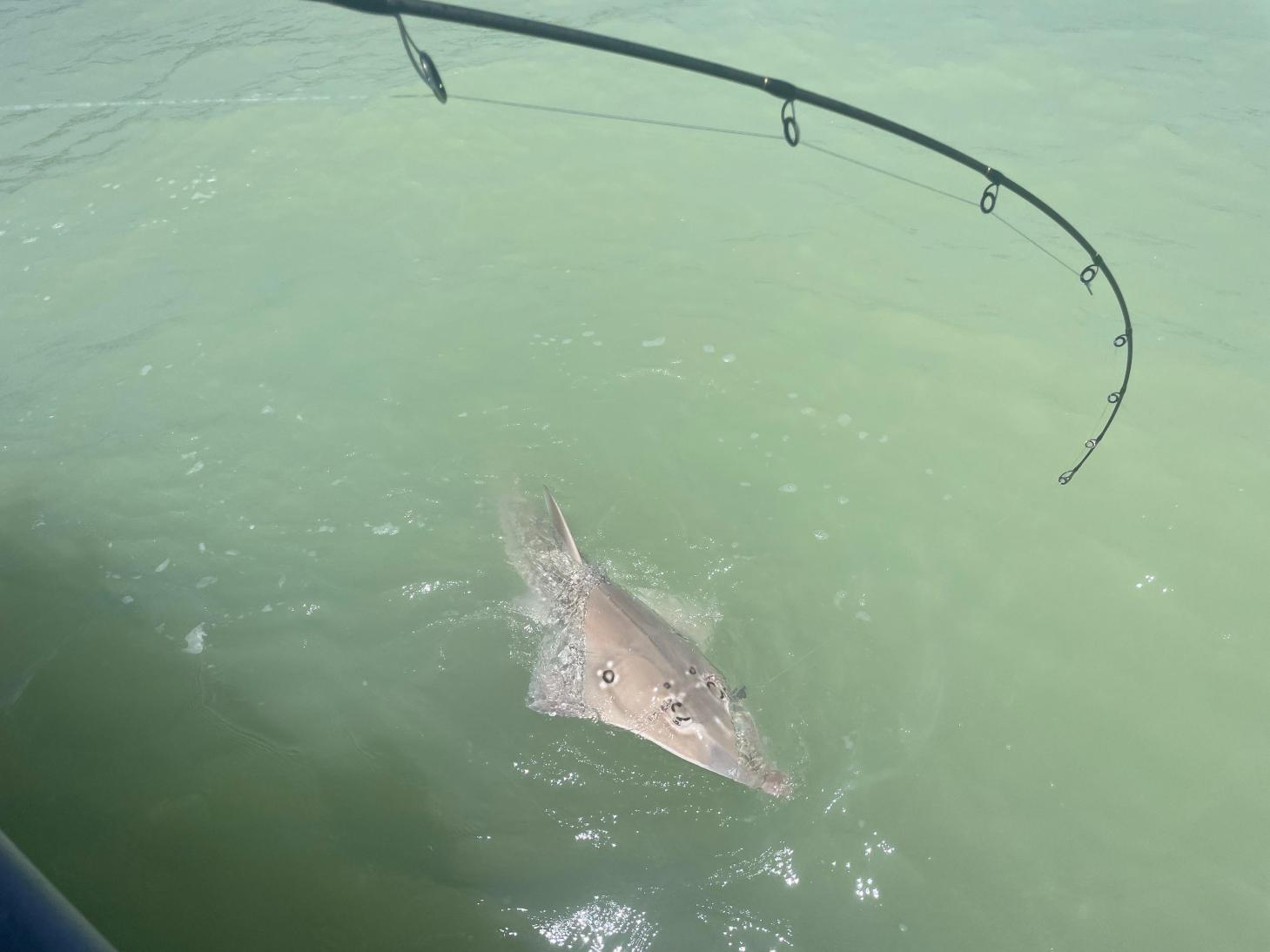 4 different sharks rays catfish bluemouths and 2 prized triple tails.