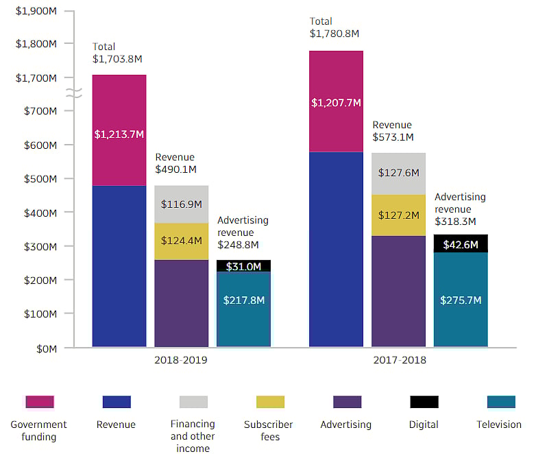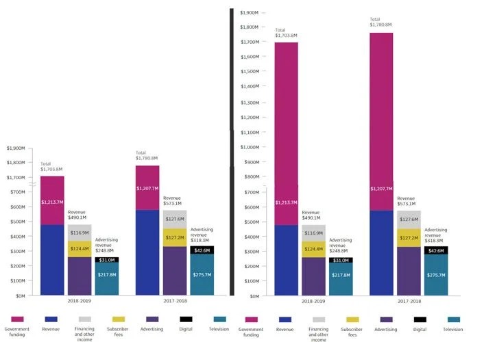 So CBC put out this purposefully misleading graphic trying to disprove the fact that they are majority government funded. Scaled the left axis such that it looks like the opposite is true. And apparently non-cbc fans are smart enough to notice such disingenuous reporting.