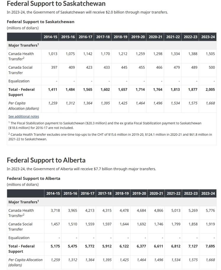 Could your area go on without the transfer of money from other areas of sask.what resources do you have in your RM?Originally posted by jazz View PostBy my calculations, Alberta and Sask could easily go it alone without federal transfers using their own surpluses and equalization contributions to fund their own health care systems.