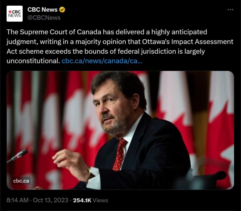 Now that the SCC has given Gilbert the slap down, I imagine all his other legislation like clean fuel standard and emissions cap will have to be redrawn as well.