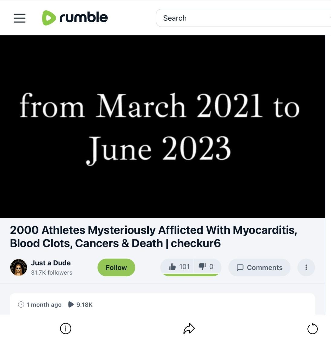 "2000 Athletes Mysteriously Afflicted with Myocarditis, Blood Clots, cancers and Deaths"