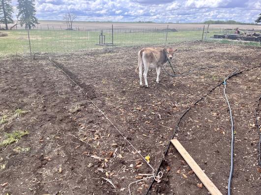 Ha! Hey, speaking of tomatoes going outside, do you use tomato cages? And, have you ever seen that white light-weight garden cloth that comes in one big long piece? Peavey Mart has it, I think. I have used a tomato cage and wrapped this cloth around it to create a little mini greenhouse. Protects from wind too which is great when planting carrot seed tape that needs consistent moisture.Originally posted by Blaithin View PostWorking in the garden today. Finally get the dog sorted on Stay Out, and she shows up!