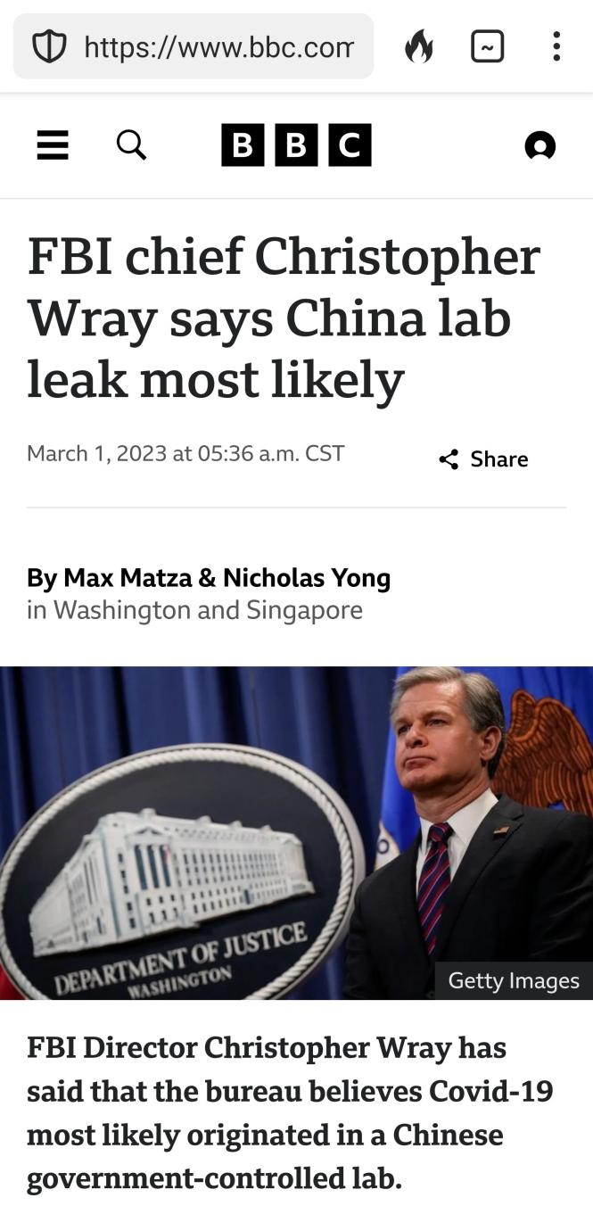Generally speaking yes but gain of function research was being done on corona viruses at the lab in Wuhan which was the epicentre of COVID-19. Maybe a coincidence but too coincidental to brush off.Originally posted by chuckChuck View PostBecause all previous epidemics and pandemics in history of humans did not come from lab leaks. So the most likely source by a wide margin is animal transfer.