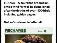 Would be on every newspaper if it was one bird covered in oil ! but not a word on the bird choppers