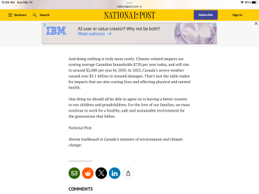 Chuck2 the simple reality is lowering emissions in Canada won’t do anything. It won’t change the weather, it won’t make life more affordable, it won’t make the economy grow faster. What it will do is make energy more expensive.Originally posted by chuckChuck View PostThe PBO said the economy will only be slightly smaller with the carbon tax. The economists have clearly said the carbon tax is the lowest cost way to reduce emissions and that other options will cost more.