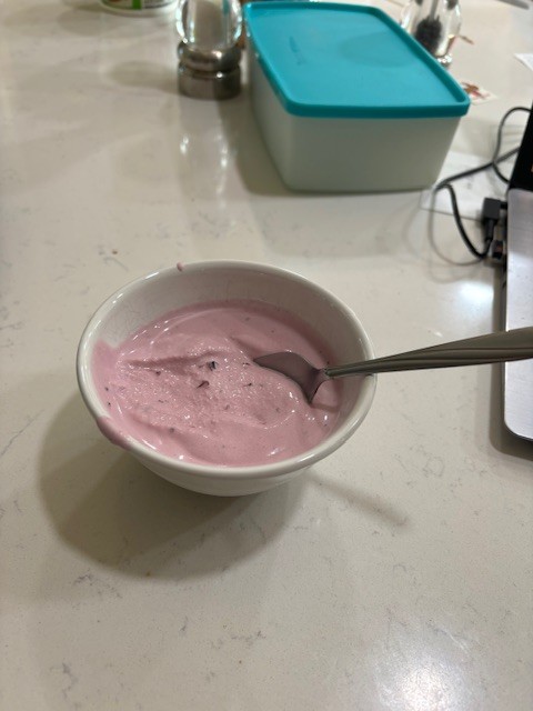 Nothing tastes better than stuff we produce. Even home made Black Current ice cream for dessert!