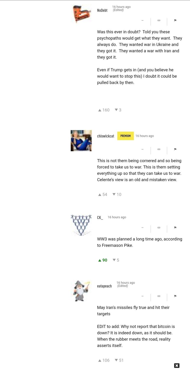 What can we expect from North Korea and China?Originally posted by WiltonRanch View PostMuch as I hope for someone to take out this terrorist regime I hate the thoughts of two wars going on with two aligned aggressors. Ie Iran and Russia.