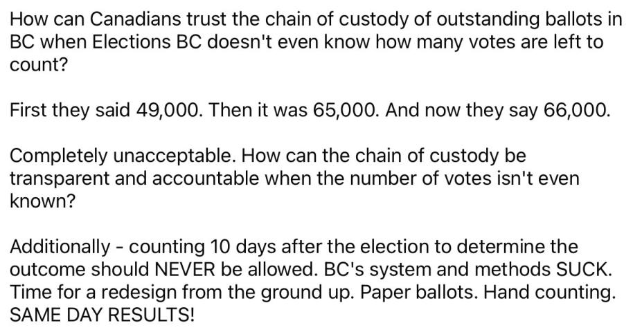 from less than 2% of vote in 2020 to 43.5% this time is actually a huge win , things are clearly not bad enough yet in canada for that increase to be even higherLast edited by cropgrower; Oct 27, 2024, 11:41.