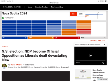 great too see Nova Scotia are not making the mistake that their neighbours made , liberals have been obliterated , cant wait for same to happen To across Canada , what did you say again about incumbents cc ?
