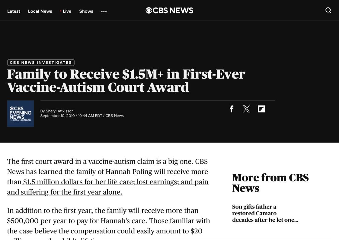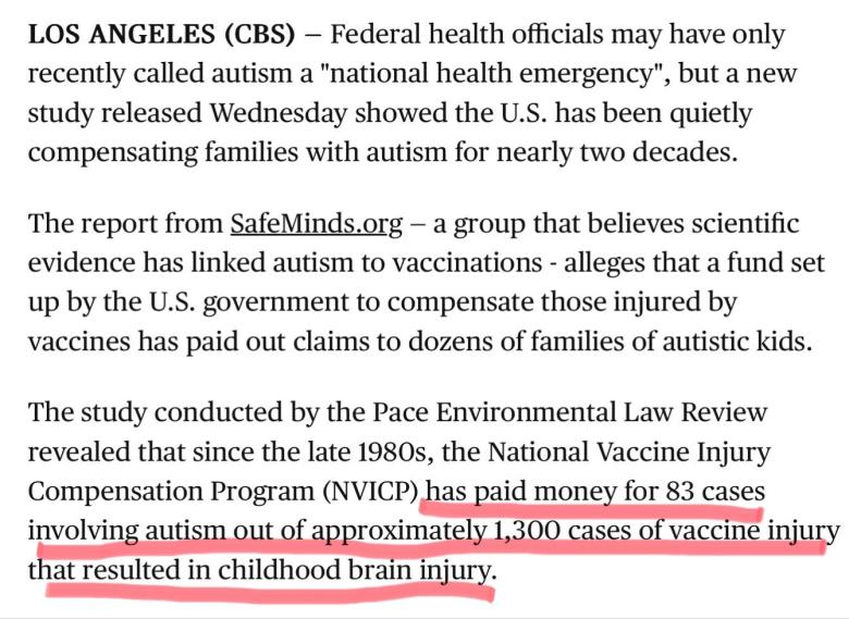you better contact them and tell them they were wrong to give compensation when their is no such thing as vaccine caused autismOriginally posted by WiltonRanch View Post