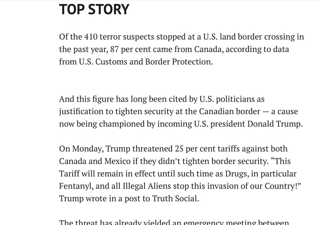 I certainly agree that there are more guns and drugs coming north than going south. How did Justin Trudeau deals with illegal US guns? He banned the purchase of legal handguns in Canada! How has that worked out? Increasing gun crime! Canada’s government has done little to stem the tide of illegal drugs, Trump has quickly brought the problem into the limelight.Originally posted by chuckChuck View PostSo are you boys saying the Prime Minister shouldn't meet with Trump to make a case for why Canada shouldn't face 25% tariffs on everything?