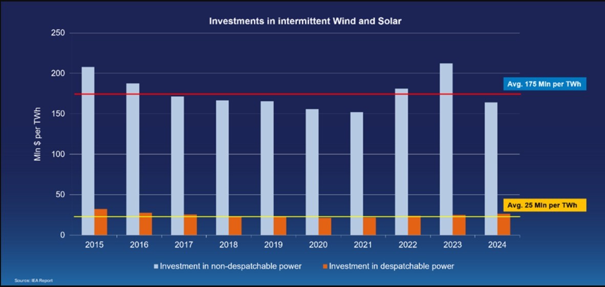 As the IEA report indicates, while wind and solar have displaced 0% of fossil fuels during this 10 year period( rounded to the nearest %, still 81% ten years later), yet investment in unreliables per unit of energy produced continues to be 7 times higher than the energy sources which actually power civilization. By Chuck's logic, shouldn't that number be improving over time, after all, the energy is free.