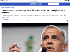 Article in the Financial Post: Canada could play leading role as G7 strikes alliance to stockpile critical minerals. financialpost.com/commodities/mining/g7-counter-china-dominance-critical-minerals.