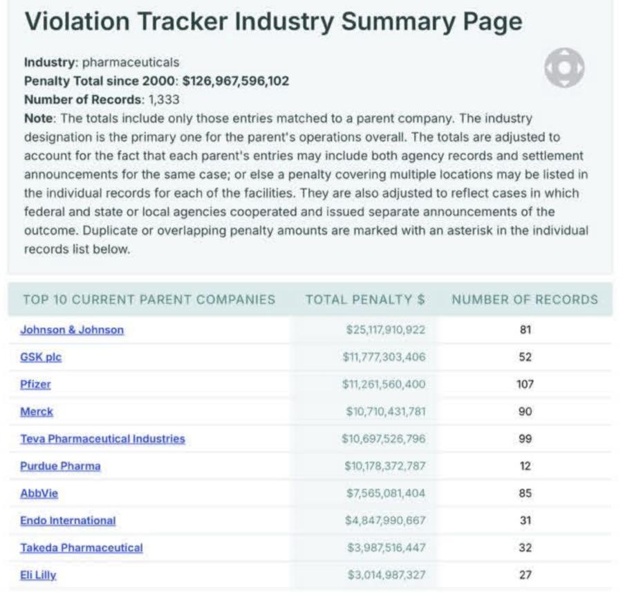 Listing of fines for violations by the great wonderful company's that want everybody to be protected , we shud never even dare to question anything they claim