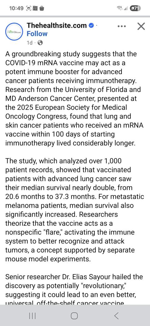 If that gets any exposer on social media every cancer patient will be getting a Covid shot.