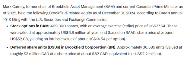 Carney made a million on his Brookfield stock options today, not including what he owns.